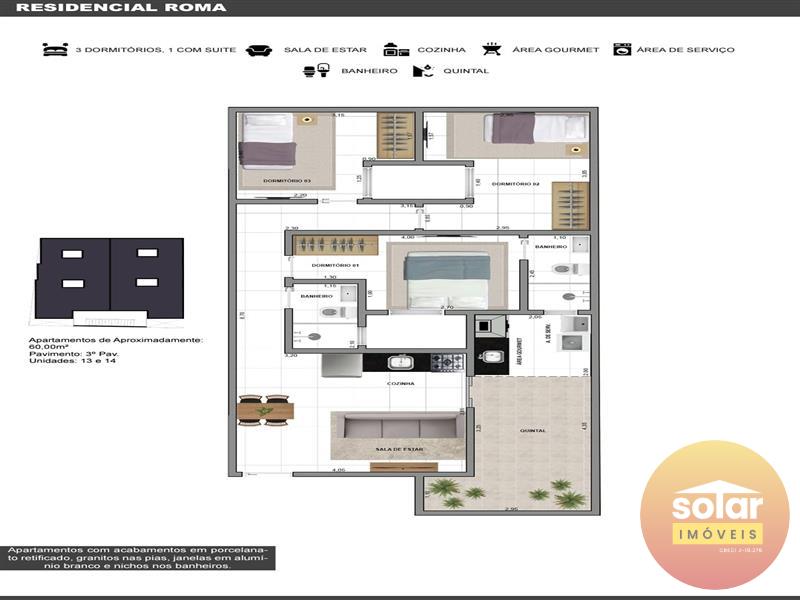 APARTAMENTO NOVO COM QUINTAL A VENDA - ARTUR ALVIM !! 60 M² - 3 DORMITÓRIOS SENDO 1 SUÍTE, SALA, COZINHA, BANHEIRO, ÁREA DE SERVIÇO, QUINTAL COM AREA GOURMET, SEM VAGA DE GARAGEM. ACABAMENTO EM PORCELANATO. PRÉDIO SEM ELEVADOR. ACEITA FINANCIAMENTO !! A 3 minutos (1,3 km) da Estação do Metrô Patriarca, lado da Radial Leste;.